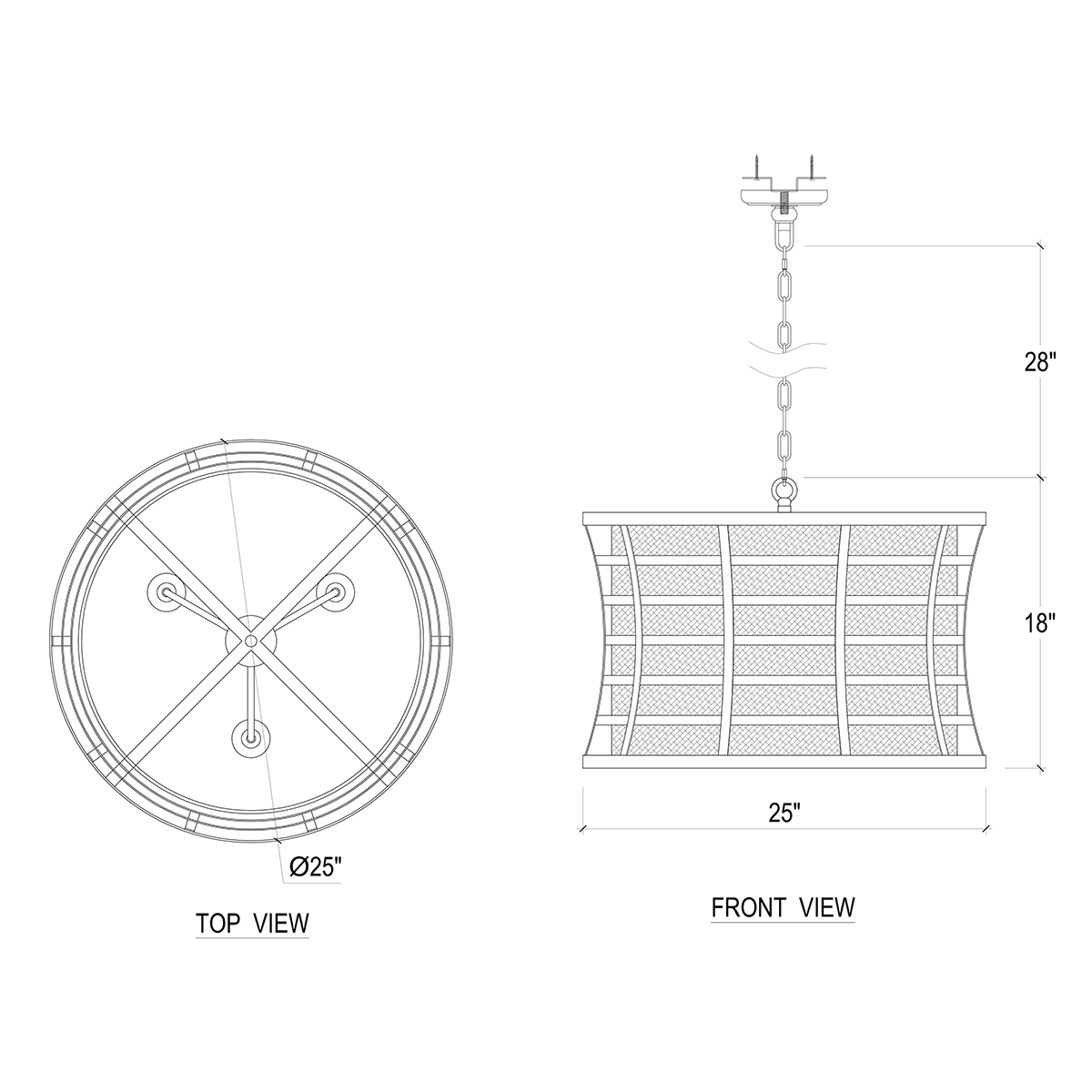 Size: Dimensions: W 25 x D 25 x H 18 in